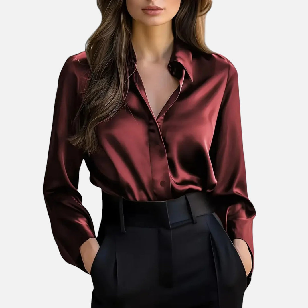 Volarno | Women’s Satin Blouse – Long Sleeve Elegance